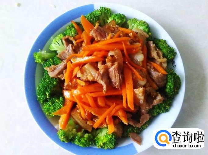 西兰花和红萝卜都是一种营养丰富的保健蔬菜,今天用这两个食材搭配猪肉做成一道好吃又营养的家常菜,下面分享它的做法给大家参考。