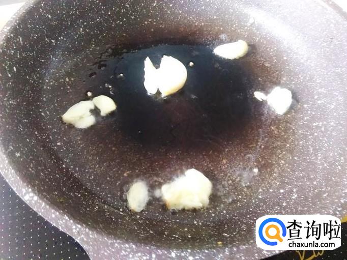 开火下油,放蒜米进去爆香。