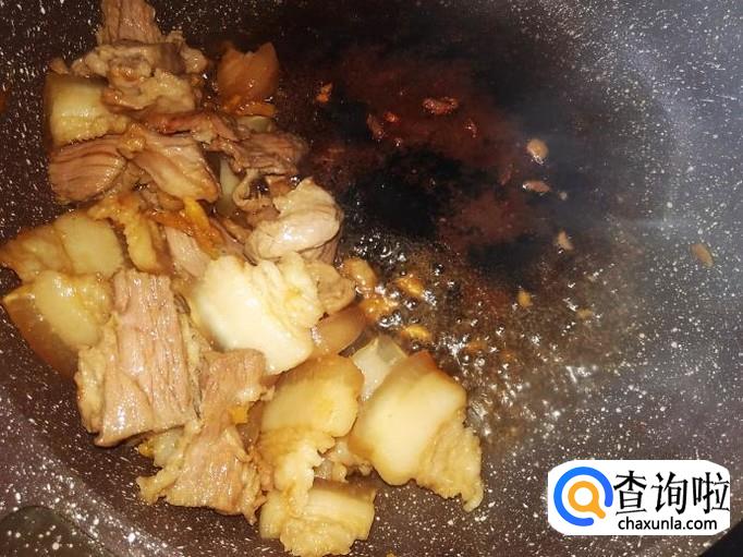 然后混合猪肉翻炒一下,盖上盖子焗1分钟左右。