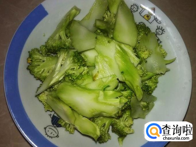 首先把西兰花清洗干净,然后把西兰花梗皮削去,切成片,西兰花切成小朵朵。