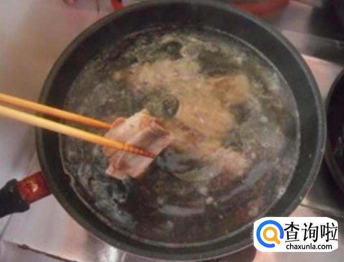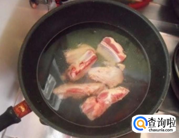 首先将新鲜的排骨切成大小合适的块洗干净,然后在锅里面烧一锅开水,将排骨放进去煮一会儿过水,去掉血沫,然后将排骨捞起来沥干。
