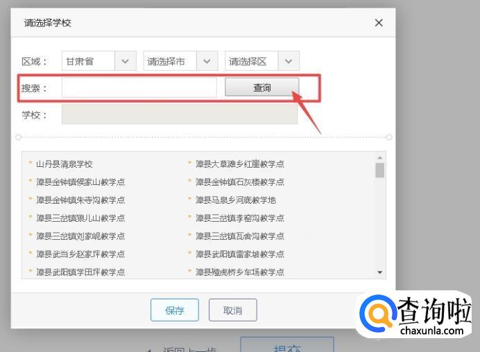 填写具体的信息,注意学校还会弹出页面选择具体学校,看好地区,然后输入学校名字查询,点击查询到的学校,点击“保存”就可以了。