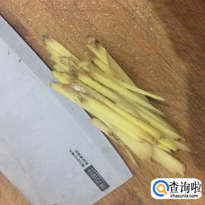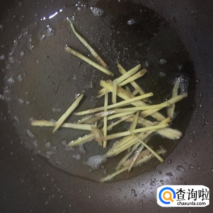 接着将生姜切成丝,锅中放入适量的食用油,待油冒烟倒入姜丝爆香。
