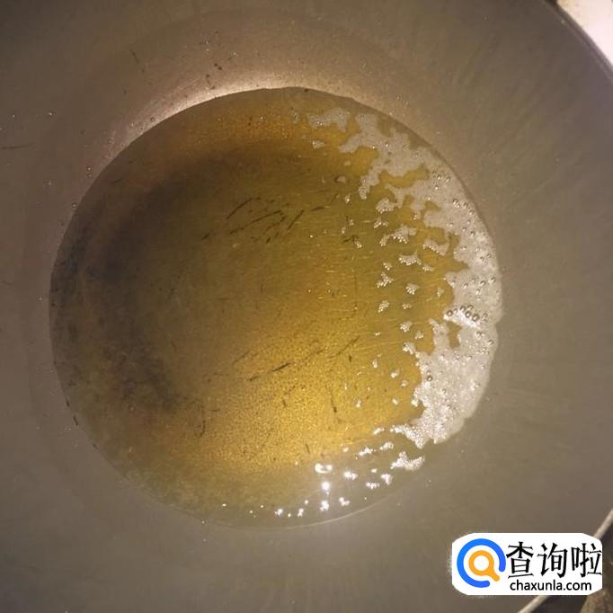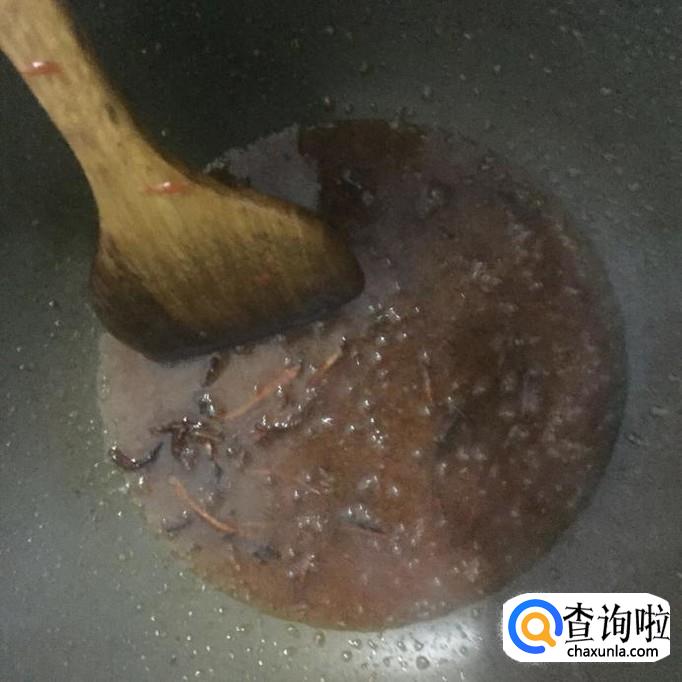 然后往过中加入两勺的白砂糖并用锅铲搅拌融化。