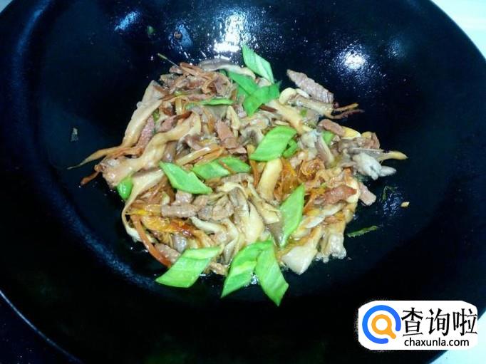 炒至鲜蘑变软,刚下汤汁,放入青尖椒略翻炒一下,放入勾兑好的薄欠。