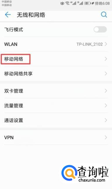 之后我们点击移动网络;