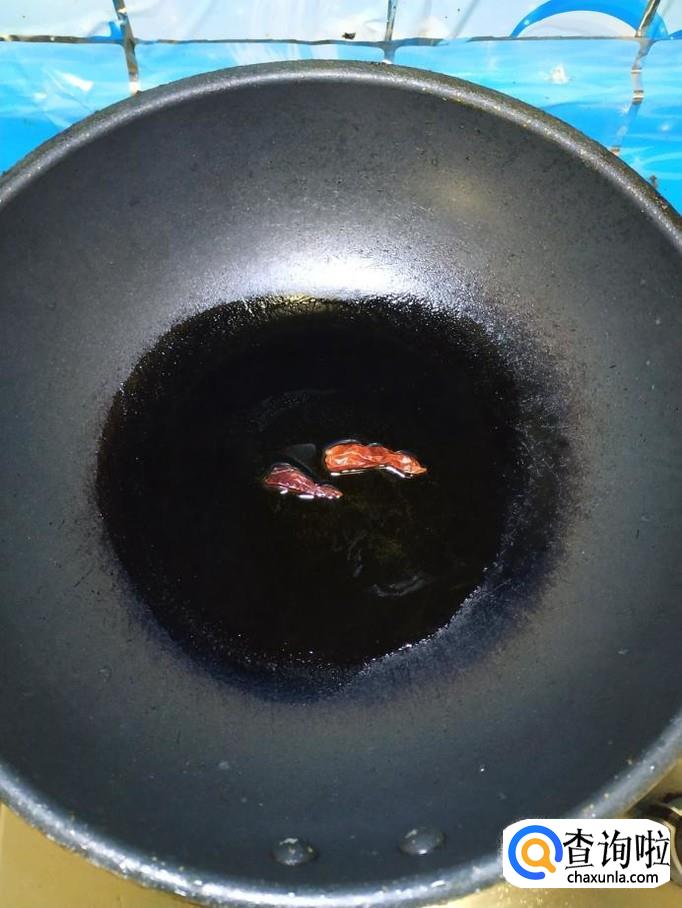 炒锅中放入适量油,油热后,将干辣椒放入锅中爆香。