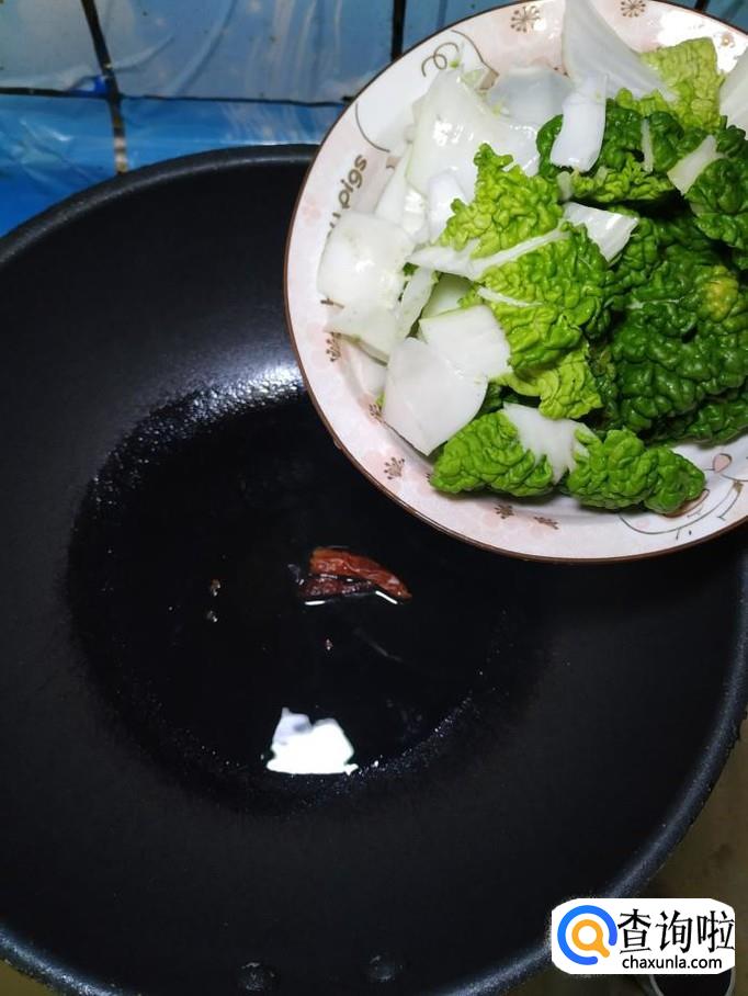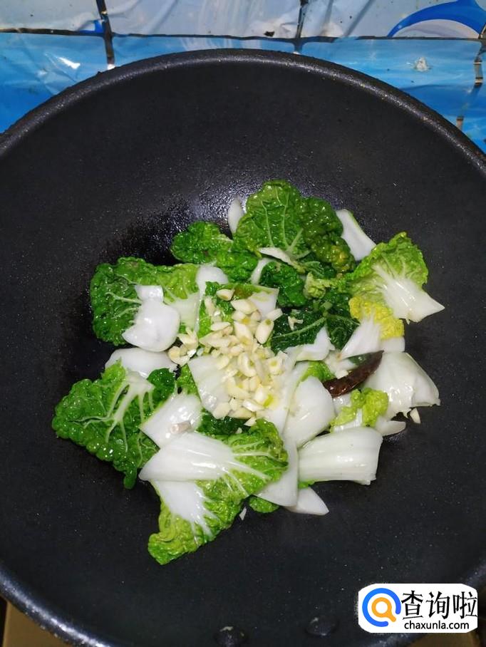 将准备好的乌塌菜,放入锅中翻炒均匀。