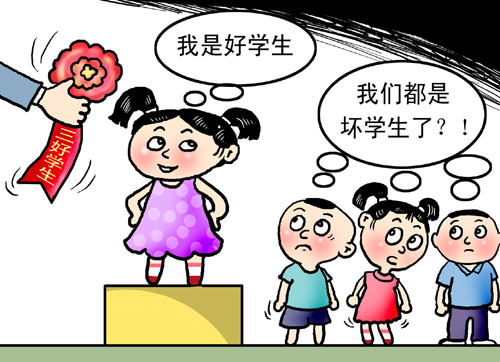 1、“三好学生”和“先进集体”每学年评选一次。评定采取先总结后评比,先民主后集中的方法。 2、“三好学生”的评选,先让学生评议提名:接着由班主任公正评价(征求有关教师意见)再实事求是地填写三好学生登记表报学校审批,最后召开表彰大会,授予三好学生证书。 3、“先进集体”的评选,先由年级推荐,再报学校审批、公布、奖励。