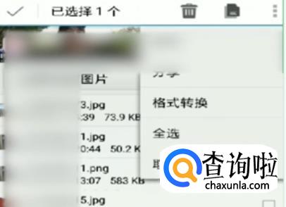 找到自己想要转化格式的图片后,勾选它,并点击右上角的“三点”,选择格式转换。