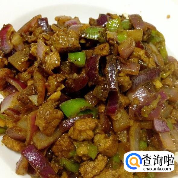 等到洋葱变软,倒入牛肉粒,再倒入孜然粉,继续翻炒到孜然粉沾在牛肉上,淋入生抽翻炒即可。