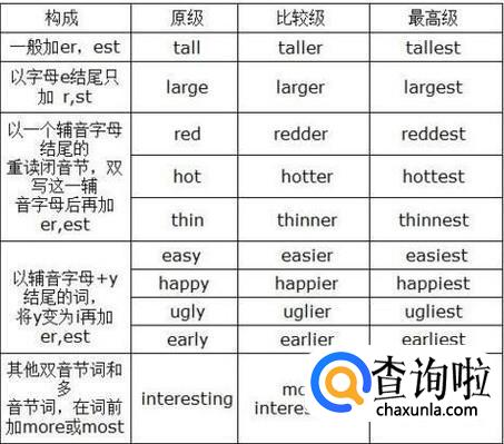 在英语中形容词有原形、比较级、最高级之分。原级就是它们的原形,比较级和最高级有规则变化和不规则变化。现整理部分常见形容词转换成比较级和最高级的变化规则