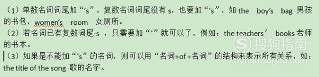 在英语中有些名词可以加“ 's”来表示所有关系,带这种词尾的名词形式称为该名词的所有格,如:my mom’s dress。一般来说,名词所有格的规则可以看一下下面的图片了解:
