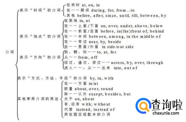 介词是一种用来表示词与词, 词与句之间的关系的词。在句中不能单独作句字成分。介词后面一般有名词代词或相当于名词的其他词类,短语或从句作它的宾语。介词和它的宾语构成介词词组,在句中作状语,表语,补语或介词宾语。