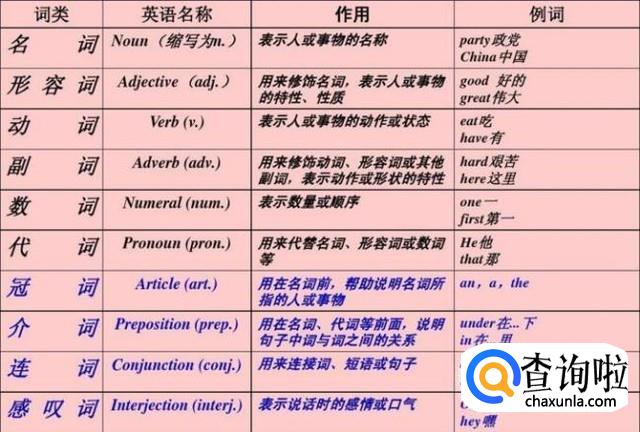英语里的词汇总共可以划分为10大类:名词、动词、代词、数词、形容词、副词、连词、介词、冠词以及感叹词。其中,前面6类为实词,后面4类是虚词。