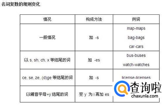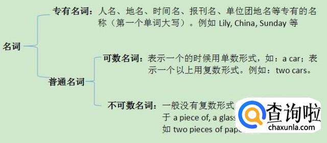 名词是指表示事物名称的词,分为专有名词和普通名词。主要的分类以及名词可数的变化规则也可以看下图: