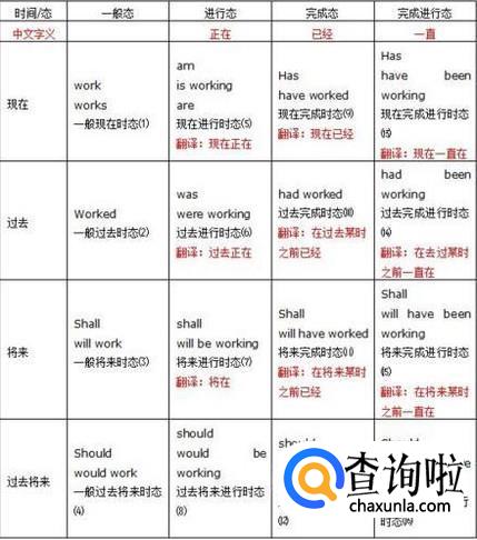 动词有时态上的区别,有一般现在时、一般过去时、现在进行时、过去进行时、现在完成时等。