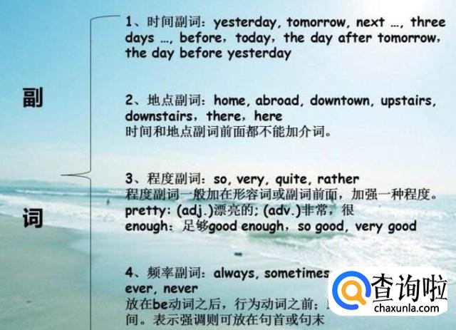 一般情况下是说形容词+ly就变成了副词,如形容词quick加上-ly变成副词quickly。事实上,副词是一种用来修饰动词、形容词、全句的词,可以用来说明时间,地点,程度,方式等概念,一般放在行为在动词之前,be动词、助动词之后。