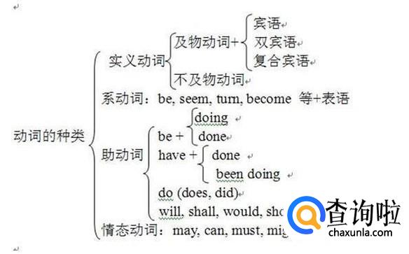 动词就是表示动作和状态的词。根据其在句中的功能,动词可分为四类,分别是:实义动词、系动词、助动词、情态动词。