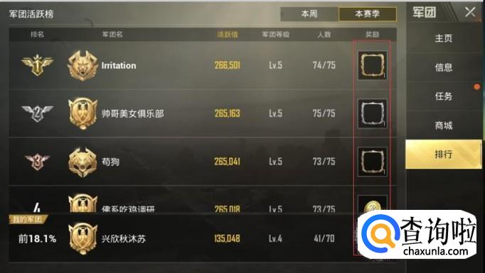 系统还会根据军团在全区的排名,每周与每赛季都会发放奖励,同样可以获得金币与头像框等奖励。