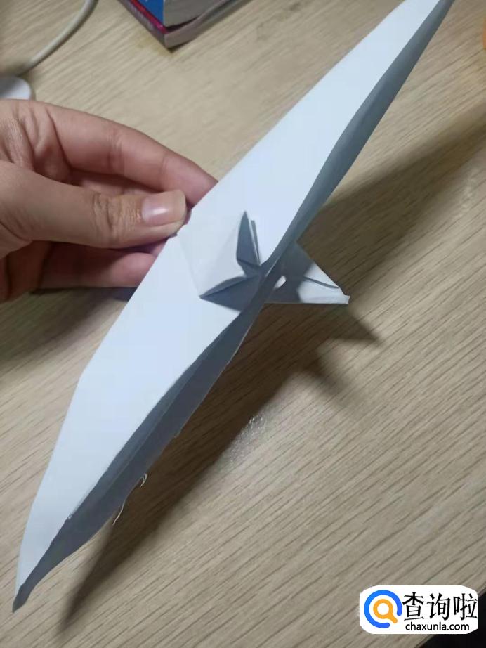 另一侧方法相同,两边向后对折,两角向上折,其中一角向上折,留出一些再向下折。