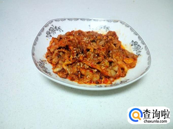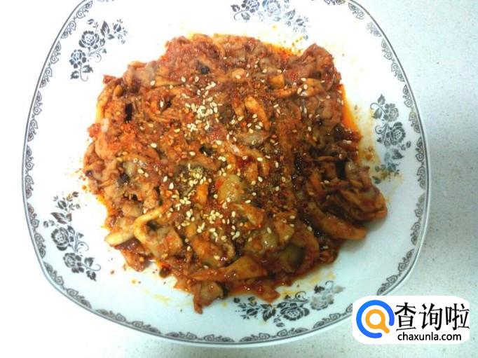 放入一大匙儿蒜蓉辣酱,料酒,少许白糖,翻炒成汁(不要放盐)。
