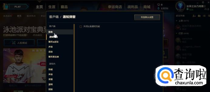 设置方法:首先登录英雄联盟,进入游戏客户端之后,点击页面右上角的【设置】按钮,然后点击页面左侧列表中的【综合】,然后勾选页面中间的【低配机器适应模式】,最后点击页面下方的【完成按钮】,就可以完成设置了。