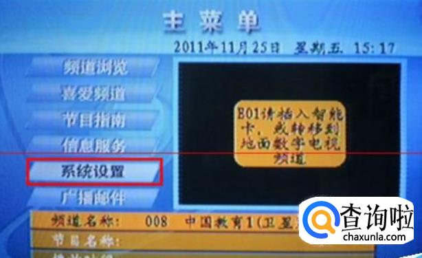 (5)收视正常后,如不安装电话,断电打开机顶盒,取出定位管理卡。