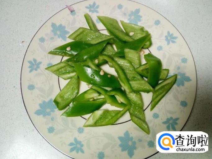 青尖椒用水清洗干净,控干水分,切成片。