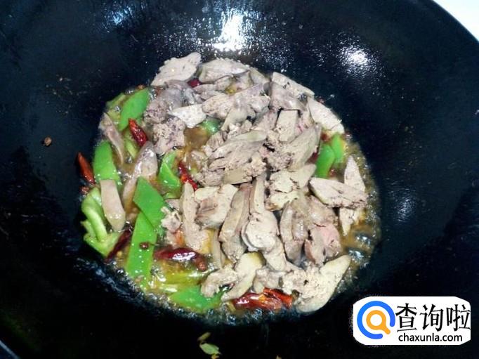 料汁熬粘稠后,放入切好的鸡肝翻炒。翻炒至鸡肝沾满料汁即可,关火出勺。