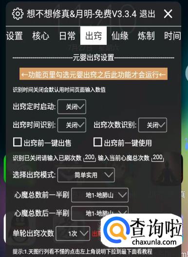 可以借助辅助工具,如下图,辅助功能有:自动灵根、洞府、聚灵阵升级;一键筑基;自动刷图、签到领奖励。