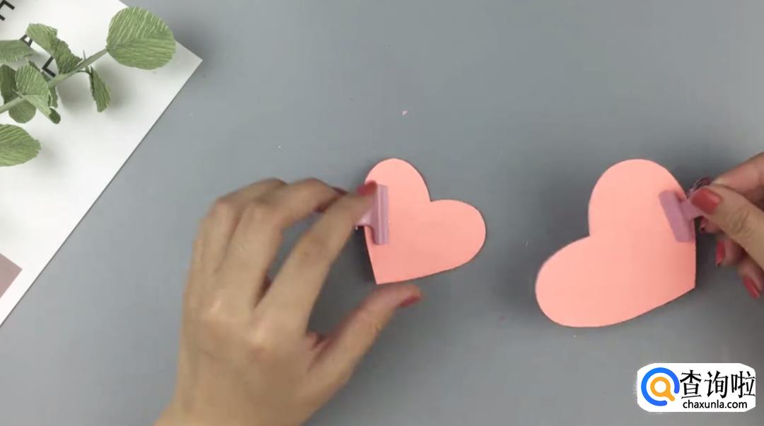 然后我们将爱心上的夹子取下来,取下来之后将爱心对折。