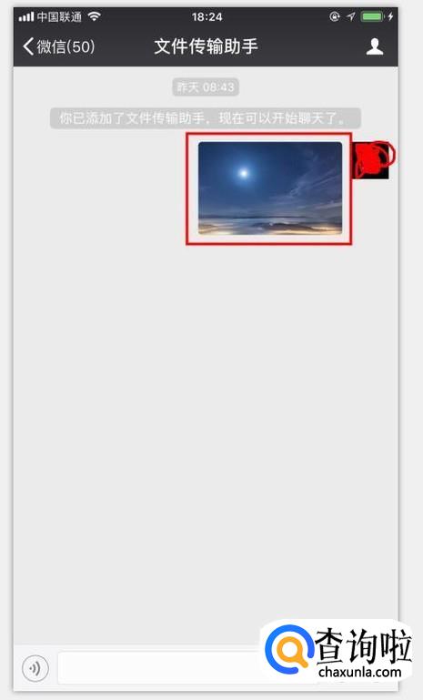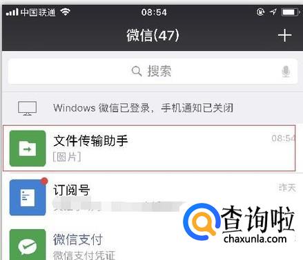 然后我们来到手机微信,发送过来的文件就会自动出现在手机端的文件传输助手,点击传送过来的文件即可进行下载保存到手机。