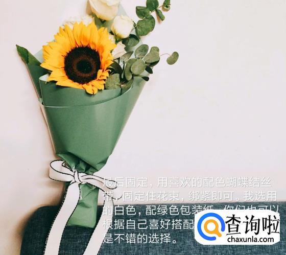 最后用喜欢颜色的蝴蝶结固定住,一个好看的花束就完成了。