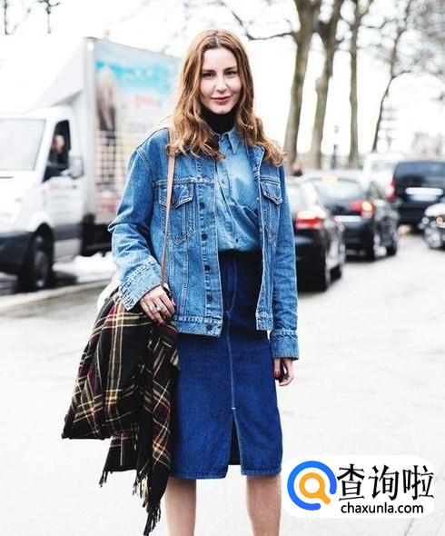 牛仔外套配半裙。牛仔外套配半裙的穿法在秋天很流行,既优雅又保暖,而且整体的视觉效果也很不错。