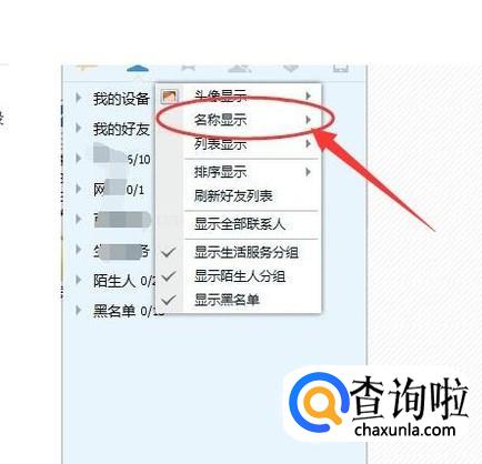 进入之后,在分组上面右击,选择“名称显示”,如图所示。
