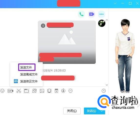 弹出的界面,我们点击发送文件;
