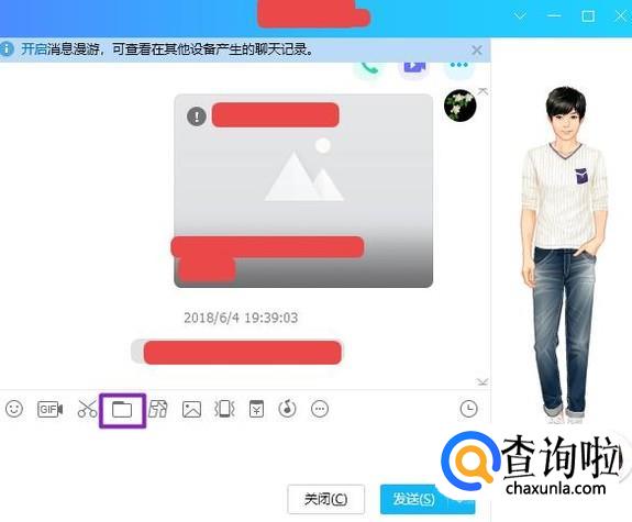 首先,我们打开一个QQ好友的聊天窗口,然后我们点击图示中的按钮;