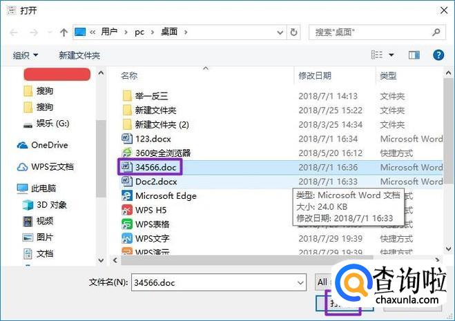 弹出的界面,我们选择一个word文档,然后点击打开;