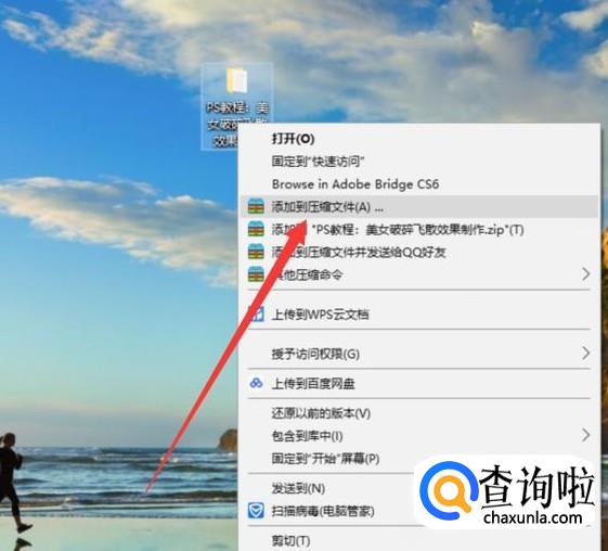 打开电脑,找到需要压缩的文件,右击一下选择“添加到压缩文件”,如图所示。