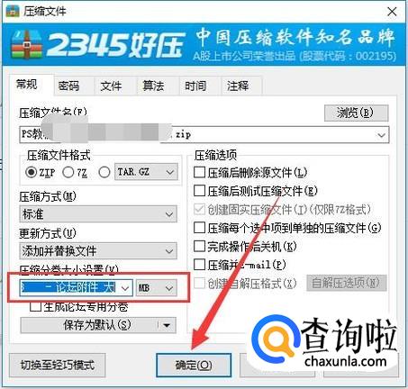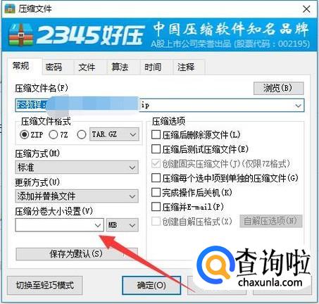 切换之后,点击图示位置设置压缩分卷的大小,如图所示。
