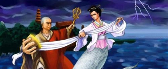 水漫金山即用大水淹没金山寺,为中国古代神话传说故事,在民间流传广泛,是中国著名四大爱情传说之《白蛇传》中的一段情节,为白娘子斗法海时所用的法术名称。金山在江苏省镇江市。水漫金山一事,极有可能来源于唐代邙山巨蛇“水漫洛城”事件。据两唐书记载,唐玄宗天宝年间,洛阳邙山出现一条巨蛇,高3米多,长31.209米。天竺高僧善无畏见到后,感叹道:“这条巨蛇准备引水漫洛城。”于是用天竺法咒对其进行攻击,几日后蛇死。
