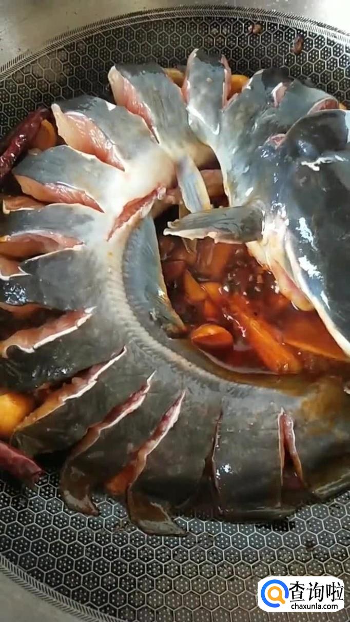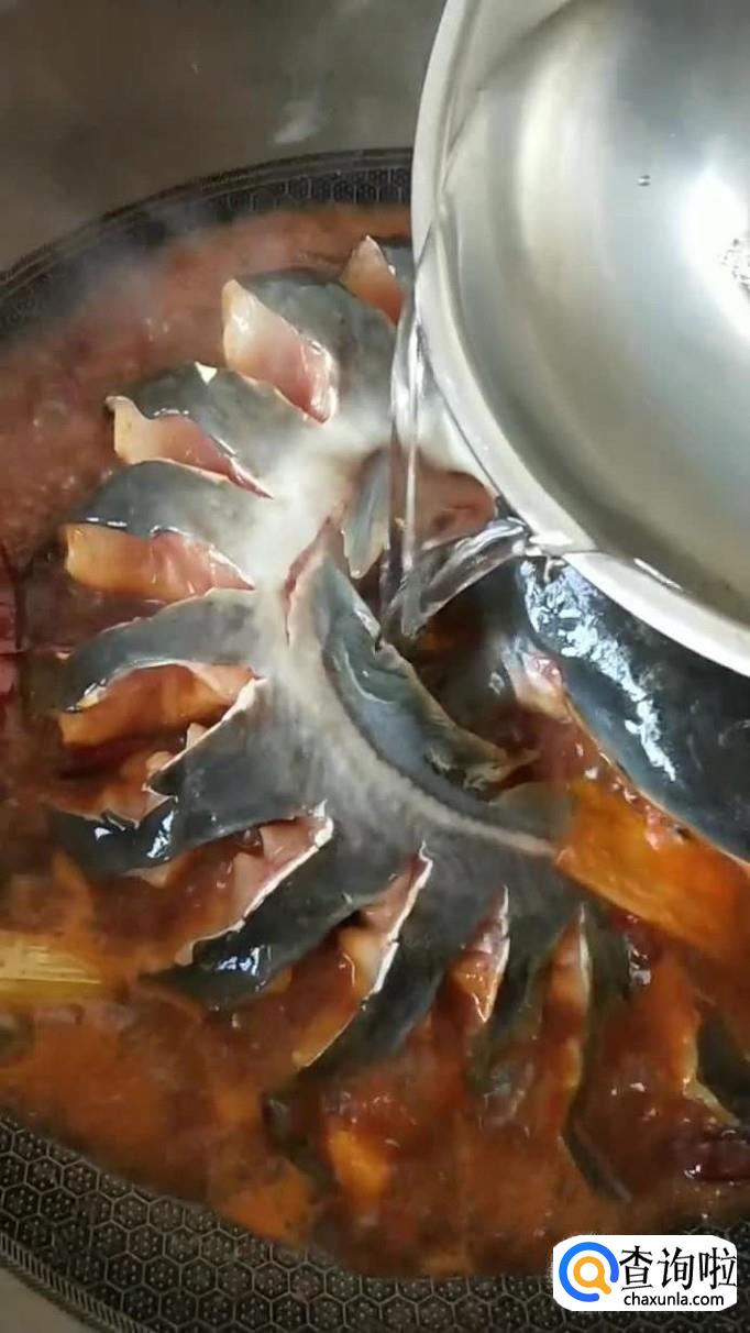 然后把处理好的鲶鱼放进去,如下图所示。