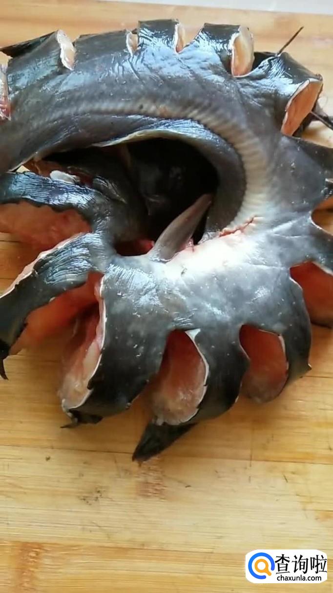 首先将买回来的鲶鱼清洗干净,打上花刀备用,如下图所示。小贴士:大家在给鲶鱼打花刀的时候,注意不能够把肉切断,把刀切进肉身2/3的位置就差不多了。