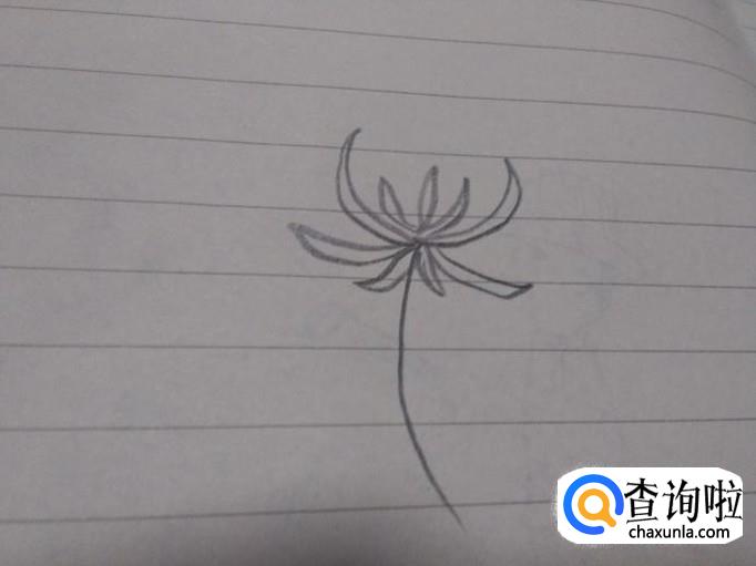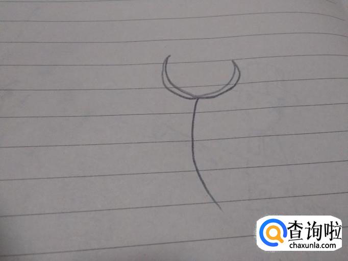 首先画出花的茎,稍微弯曲一点,画出最大的两片花瓣。
