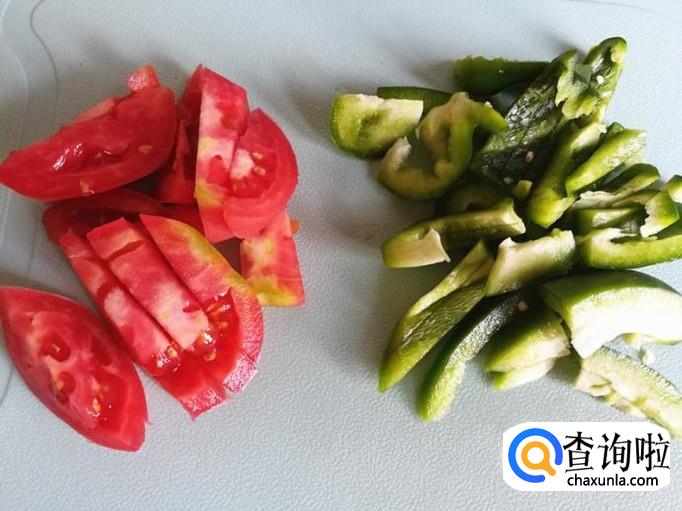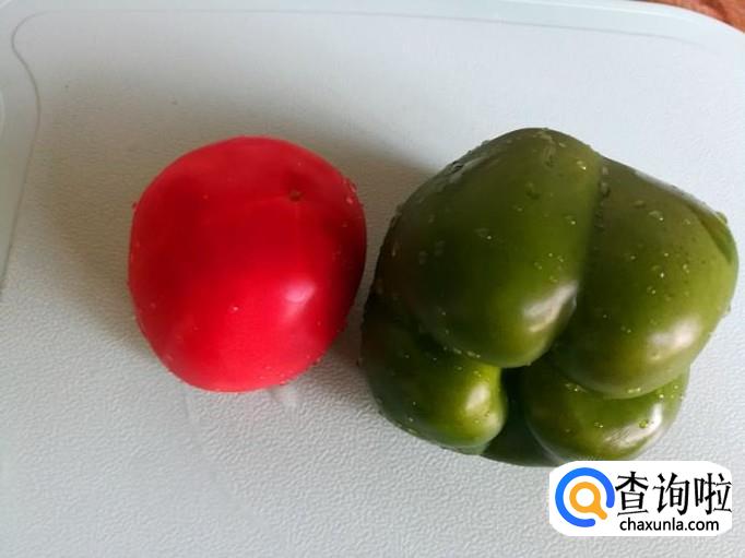 上炒菜锅,加入适量的植物油烧热,倒入准备好的西红柿和青椒翻炒几下。