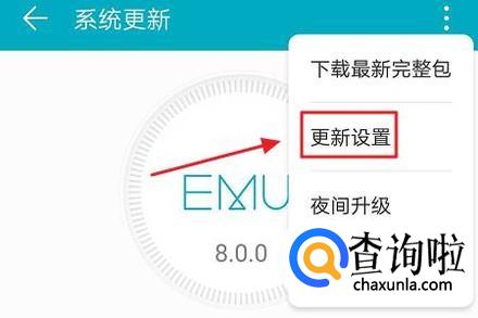 在此页面的右上角有一个三点的图标,我们点击它会弹出一个窗口,其中有一项“更新设置”,如下图二...