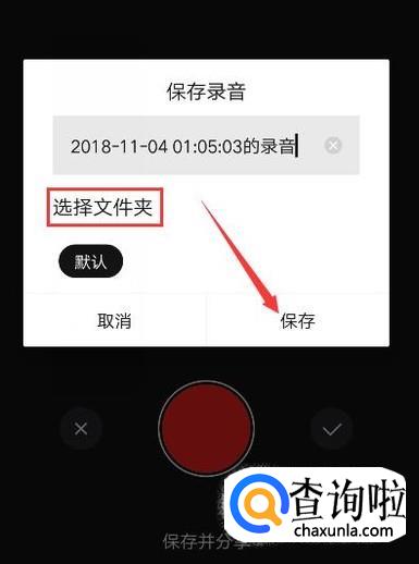 点击下打钩的功能会弹出保存录音的界面选择好文件夹后在点击保存即可,如图