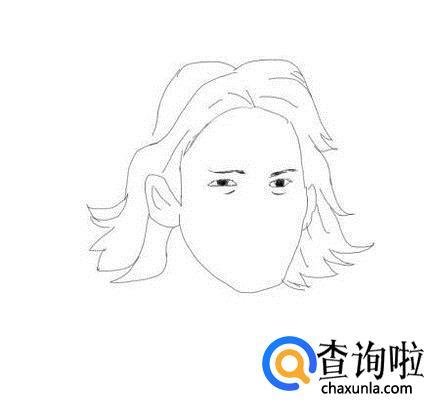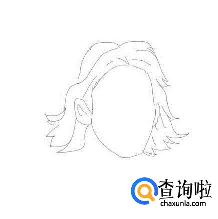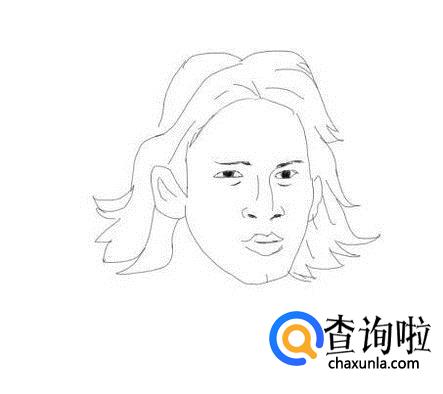再在头发的基础上画出梅西的面部,然后在面部上画出梅西的两只耳朵,如图所示: