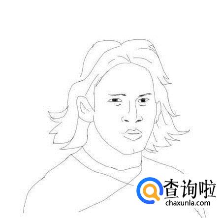最后在头部下面画出梅西的脖子,然后再画出梅西的身体及衣服在,这样简笔画梅西就画好了,如图所示: